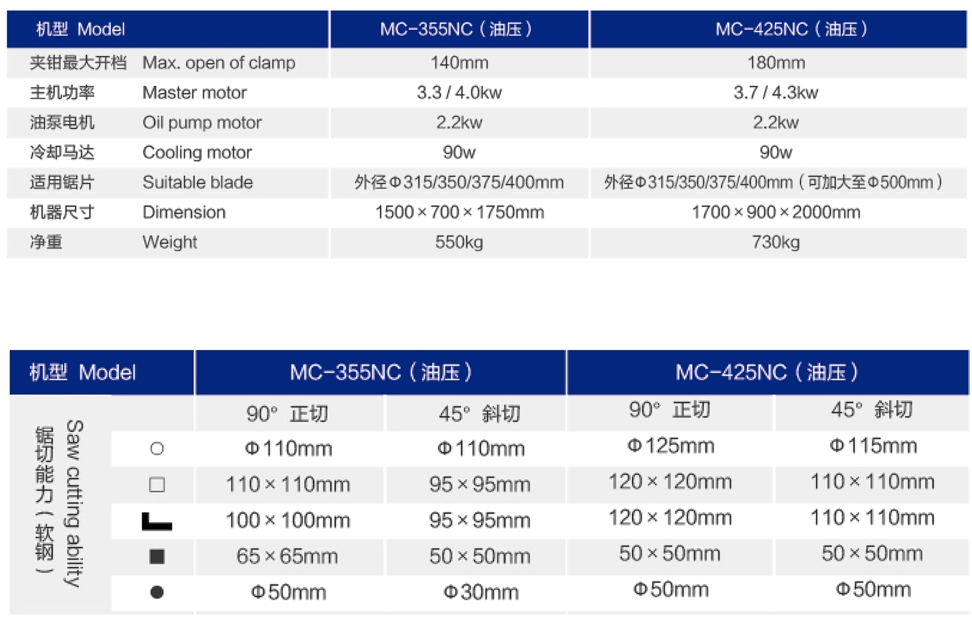 Пневматическая циркулярная пила по металлу MC-315B оснащена высокоэффективной червячной передачей и червячным приводом, обеспечивает высокую скорость резания, бесшумность, отсутствие заусенцев и заусенцев. Подача инструмента осуществляется пневматическим методом, а головка машины поворачивается на 45° влево и вправо. Выдвижение и отход зажима осуществляется пневматически и автоматически. СОЖ автоматически циркулирует, обеспечивая гладкую поверхность резания заготовки. Резка централизована, а обслуживание просто.